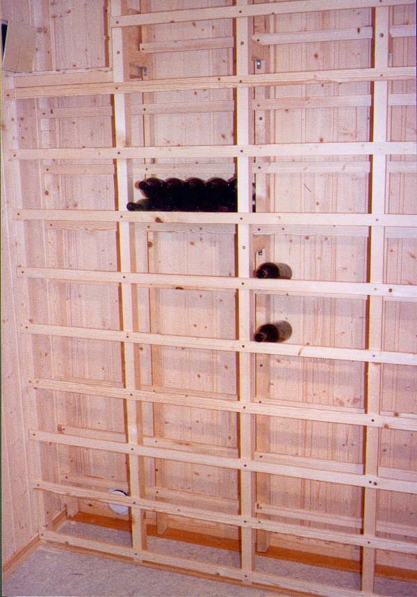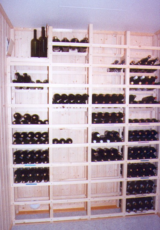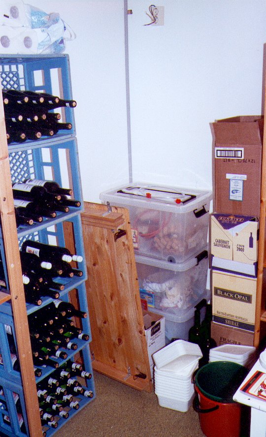Da jeg begynte med å legge vin, hadde jeg ikke noen egnet sted å lagre vinen. Det ble derfor til at den ble lagret i melkekasser (takk Tine) i et rom i kjelleren. Men etterhvert som produksjonen ble større, begynte denne måten å lagre vinen på å bli uholdbar. Derfor ble rommet hvor kassene sto i omgjort til en kombinert vinkjeller og matbod. Underveis tok jeg bilder av rommet. Bildene gir et inntrykk av hvordan det var før ombyggingen og hvordan sluttresultatet ble.